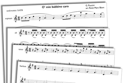 After getting a degree in music I worked as a piano and saxophone teacher, among other things. Besides other musical activities, I currently direct a saxophone quartet and I increasingly apply myself to the arranging and composing of music for ensembles. I always use the original piece as much as possible, to turn that into a playable arrangement. This website contains a variety of sheet music for saxophone quartets.